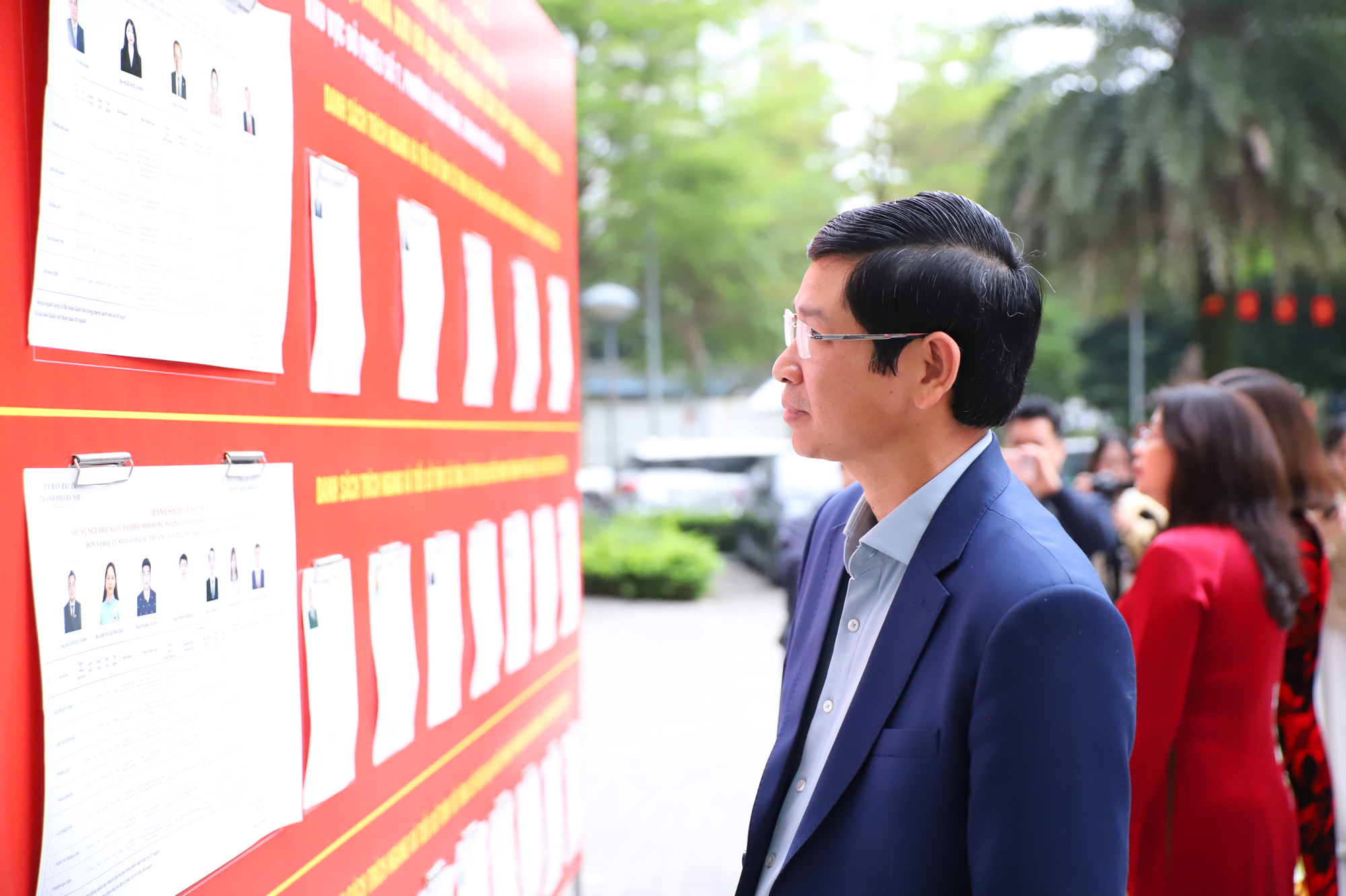 Thứ trưởng Bộ VHTTDL Hồ An Phong nghiên cứu danh sách trích ngang và tiểu sử tóm tắt của đại biểu ứng cử.