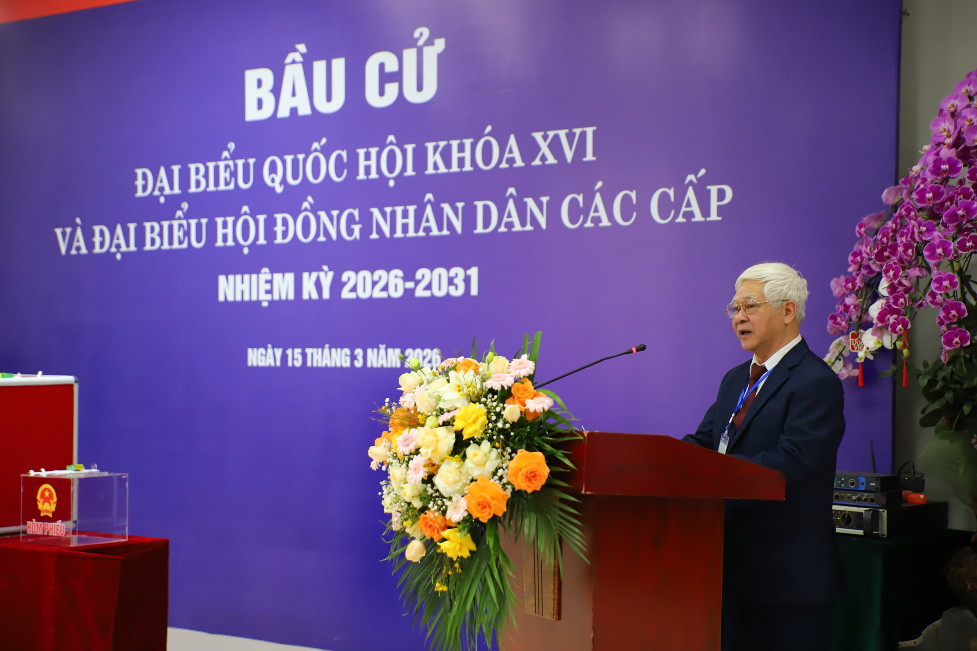 Toàn cảnh lễ khai mạc tại khu vực bỏ phiếu số 7, phường Xuân Đỉnh, thành phố Hà Nội.
