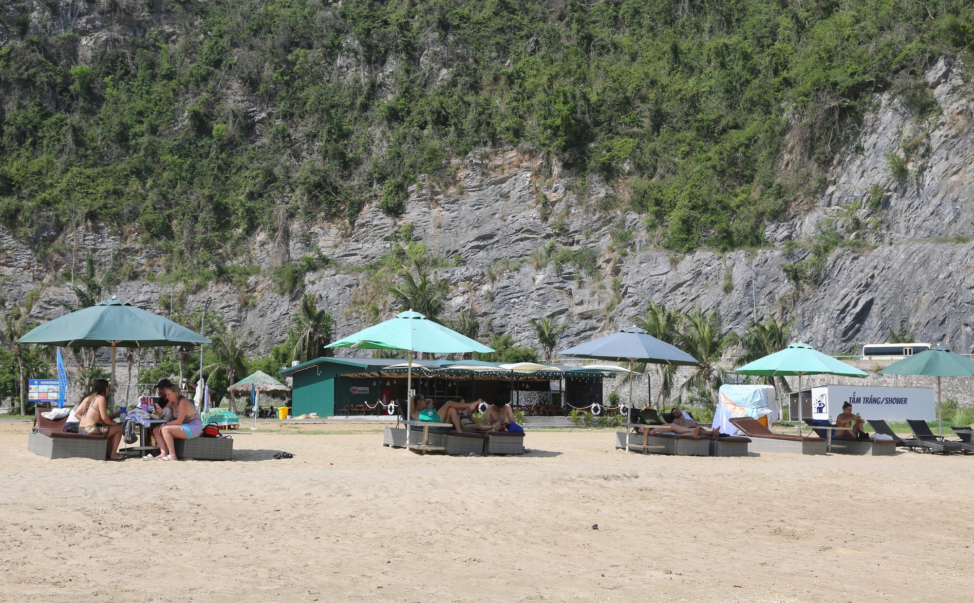 Du khách nước ngoài tại bãi tắm Tùng Thu, thị trấn Cát Bà. Ảnh: Minh Thu - TTXVN