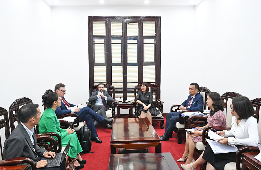 Cục Du lịch Quốc gia Việt Nam làm việc với đoàn Tập đoàn Global Blue về thúc đẩy hoạt động mua sắm của du khách quốc tế tại Việt Nam và đẩy mạnh số hóa thủ tục hoàn thuế (Ảnh: TITC)