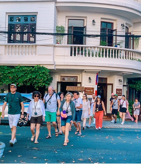 Đoàn khách quốc tế ghé Bến Ninh Kiều, Cần Thơ. Ảnh: Kiều Mai