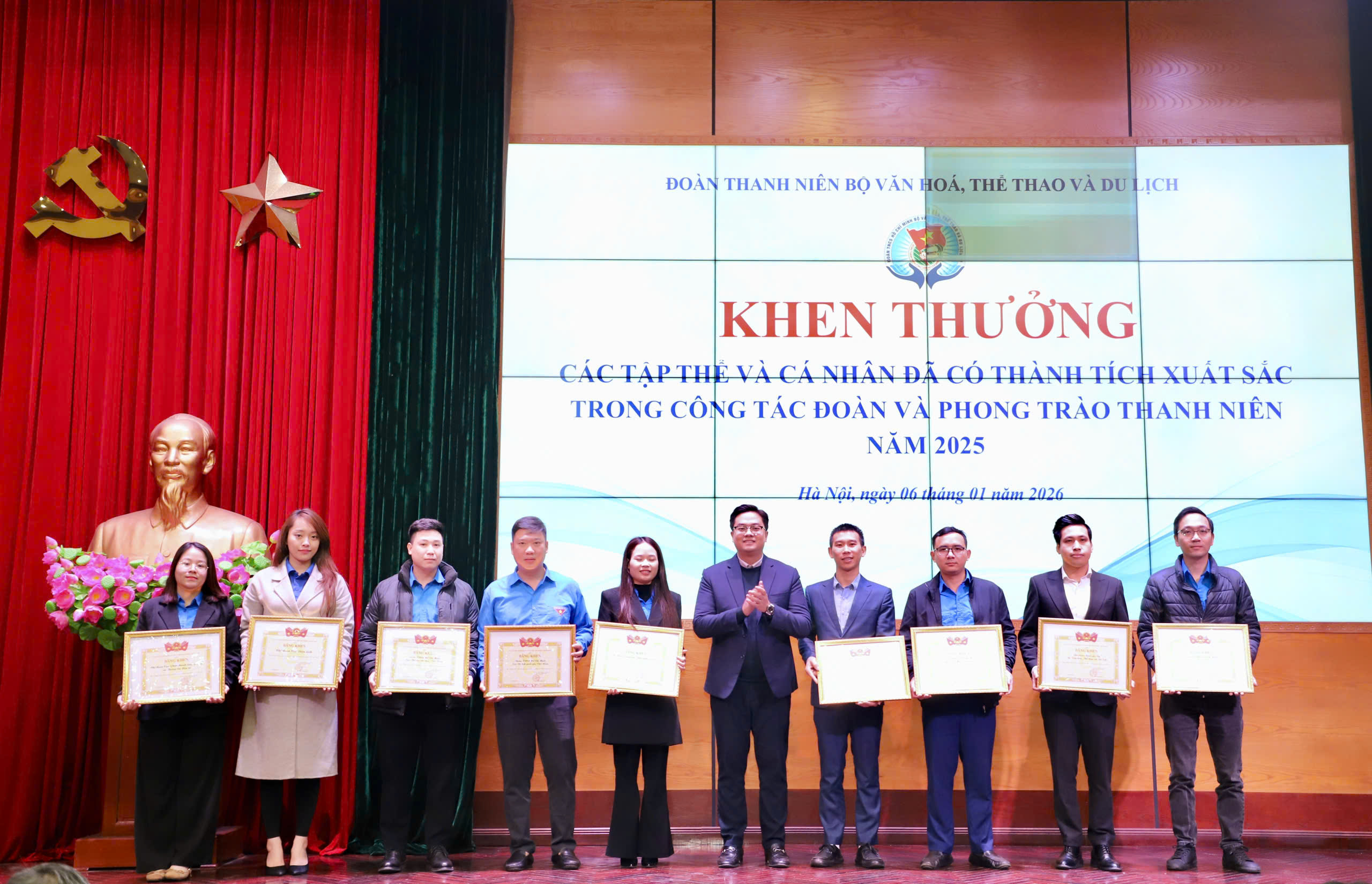 Với những đóng góp và nỗ lực của tập thể, Đoàn Thanh niên Bộ VHTTDL vinh dự là một trong 10 đơn vị được trao Cờ thi đua xuất sắc công tác Đoàn và phong trào thanh niên năm 2025 của Đoàn Thanh niên Chính phủ. Nhiều tập thể, cá nhân trực thuộc Đoàn Bộ cũng được khen thưởng vì có thành tích nổi bật trong năm./.